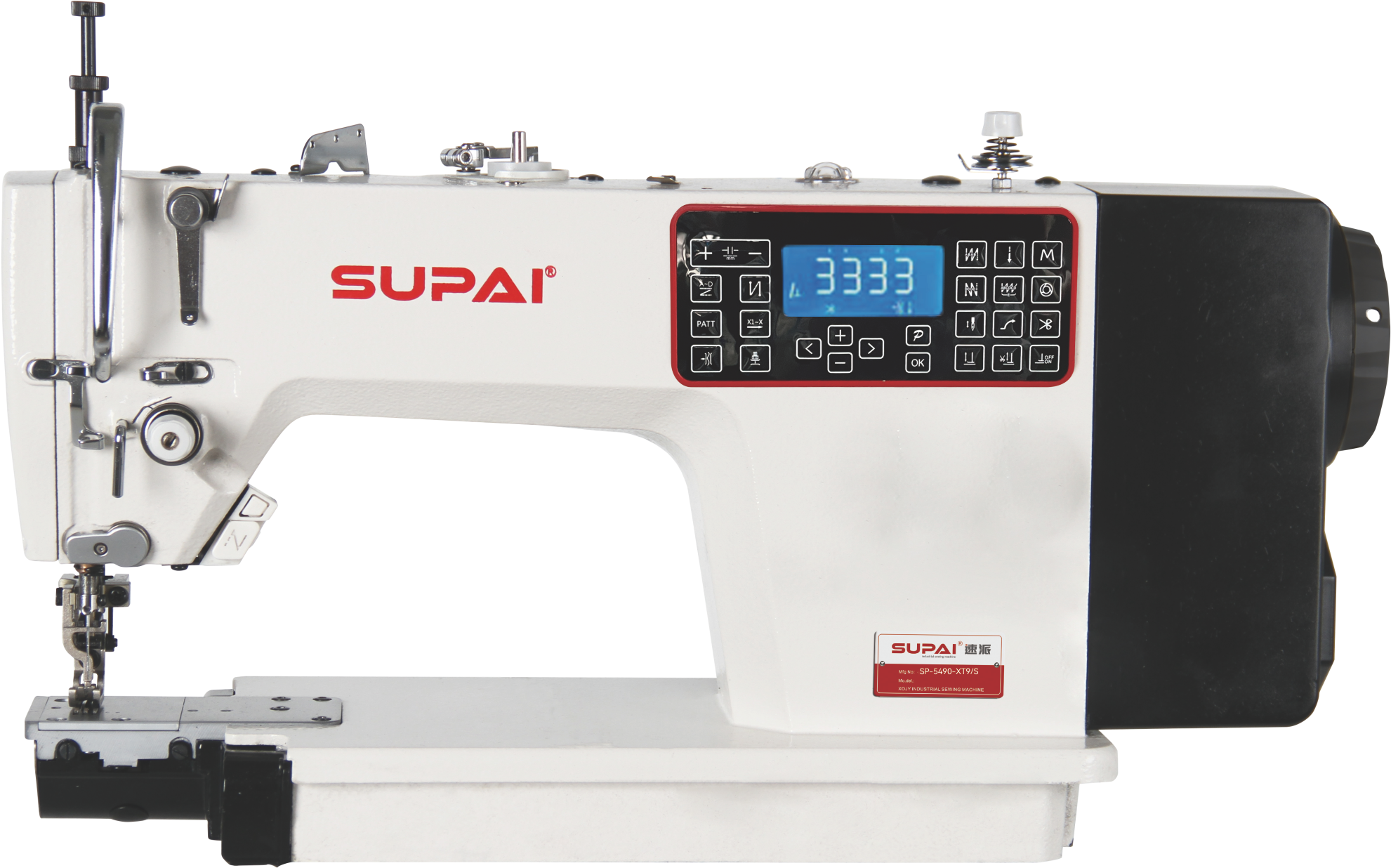 The upper differential feeding is driven by a motor and adjusted by buttons