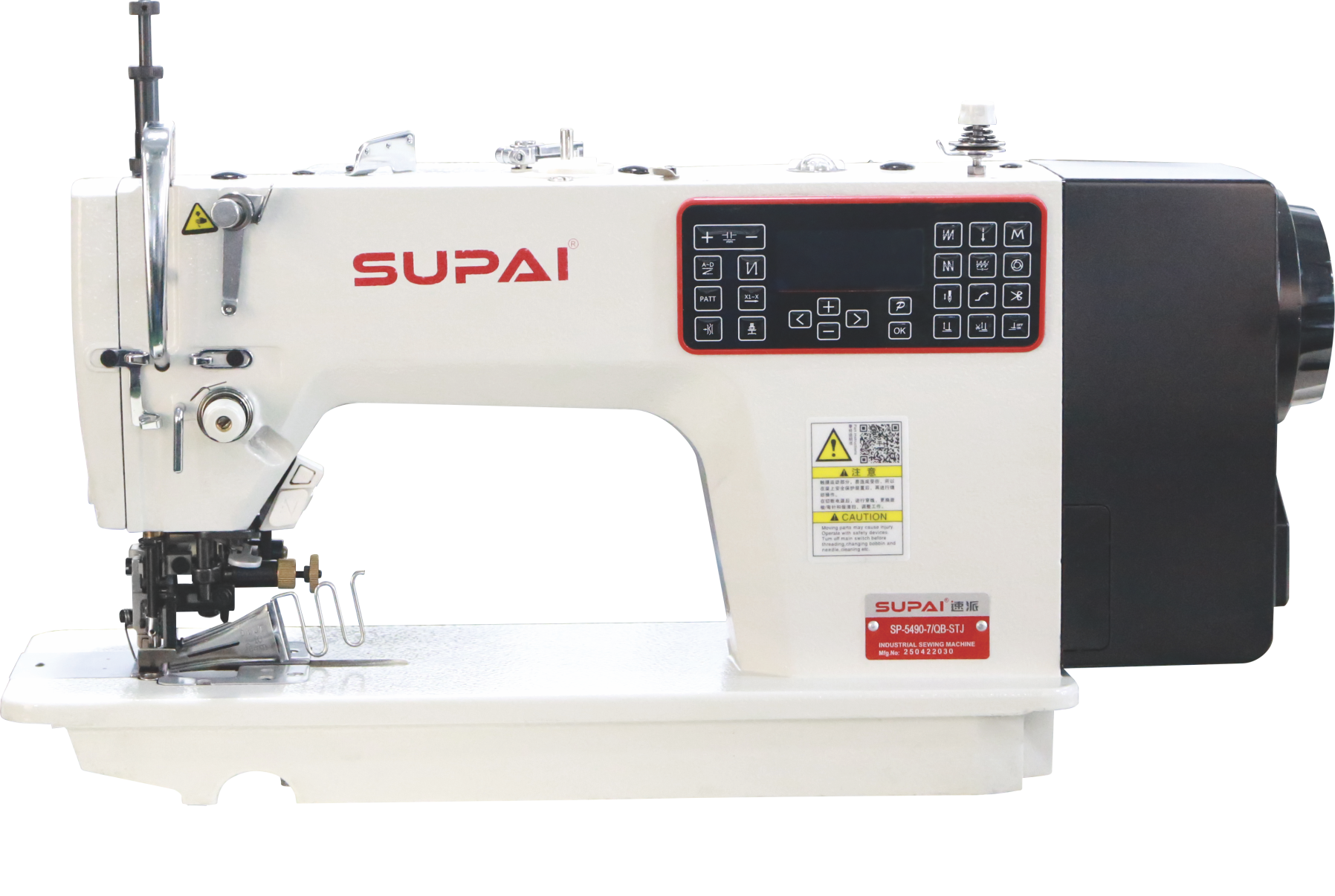 The upper differential feeding is driven by a motor and adjusted by buttons