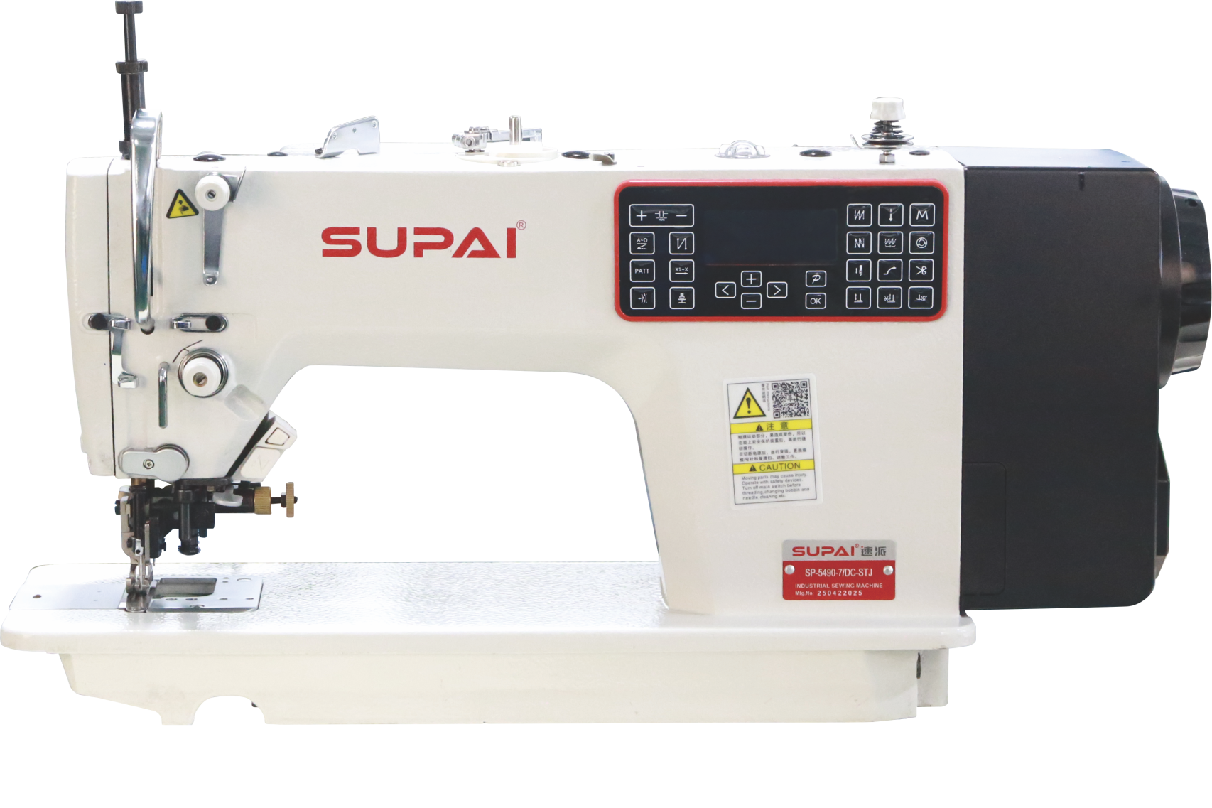 The upper differential feeding is driven by a motor and adjusted by buttons