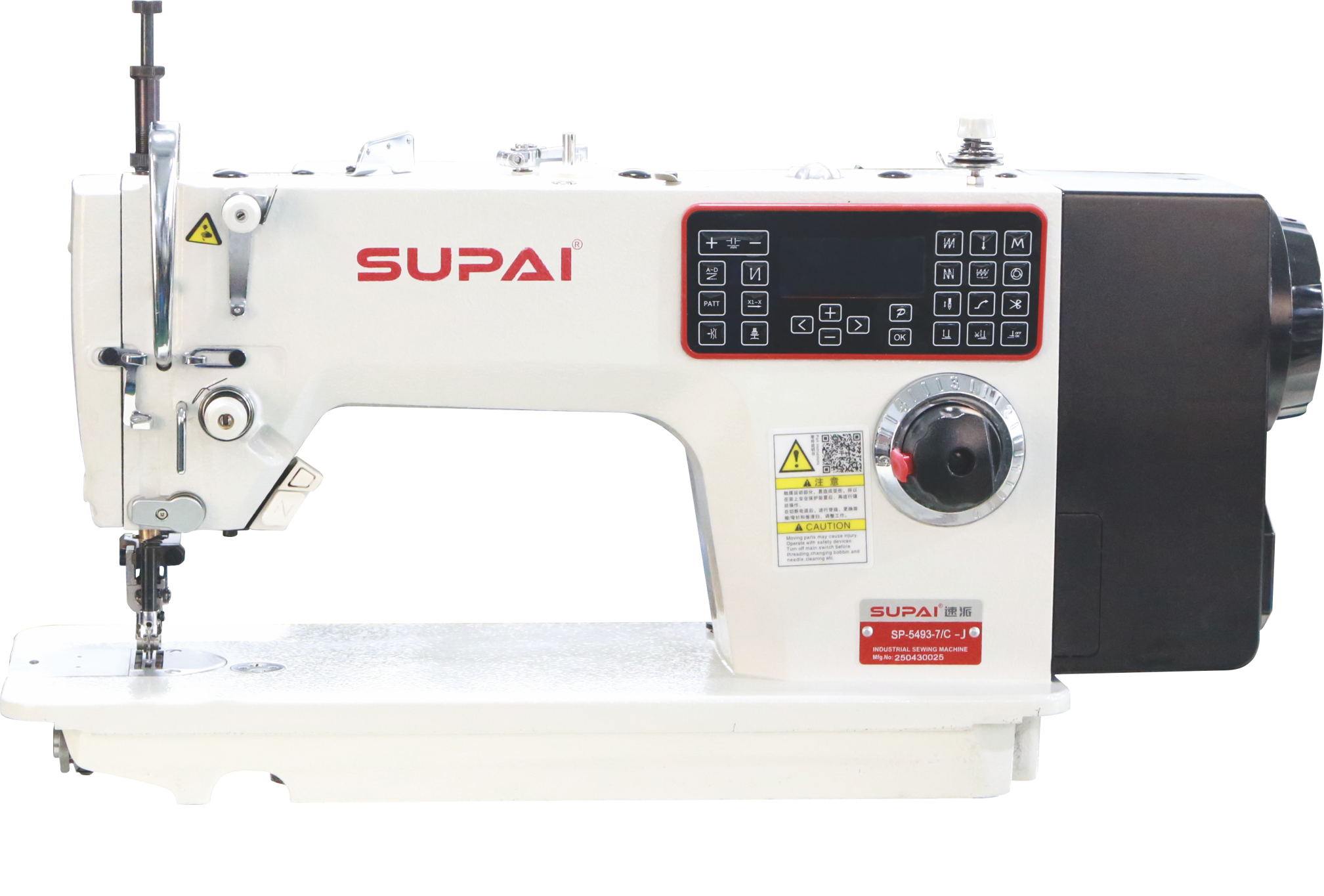 The upper differential feeding is driven by a motor and adjusted by buttons